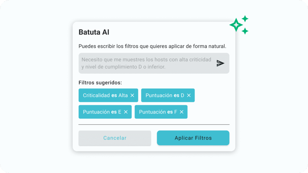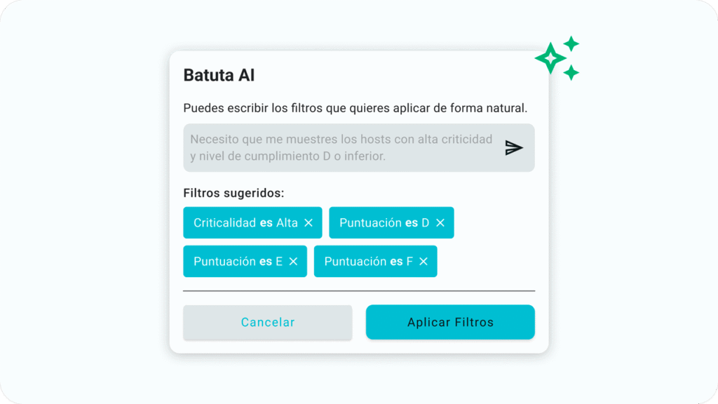 Última actualizaciónIntegramos capacidades de IA directamente en los flujos operativos de Batuta para reducir el tiempo y la complejidad de tareas como la generación de scripts y la creación de filtros.